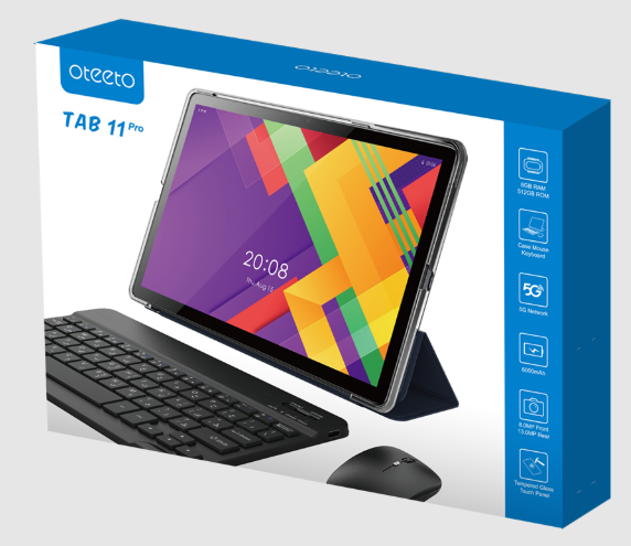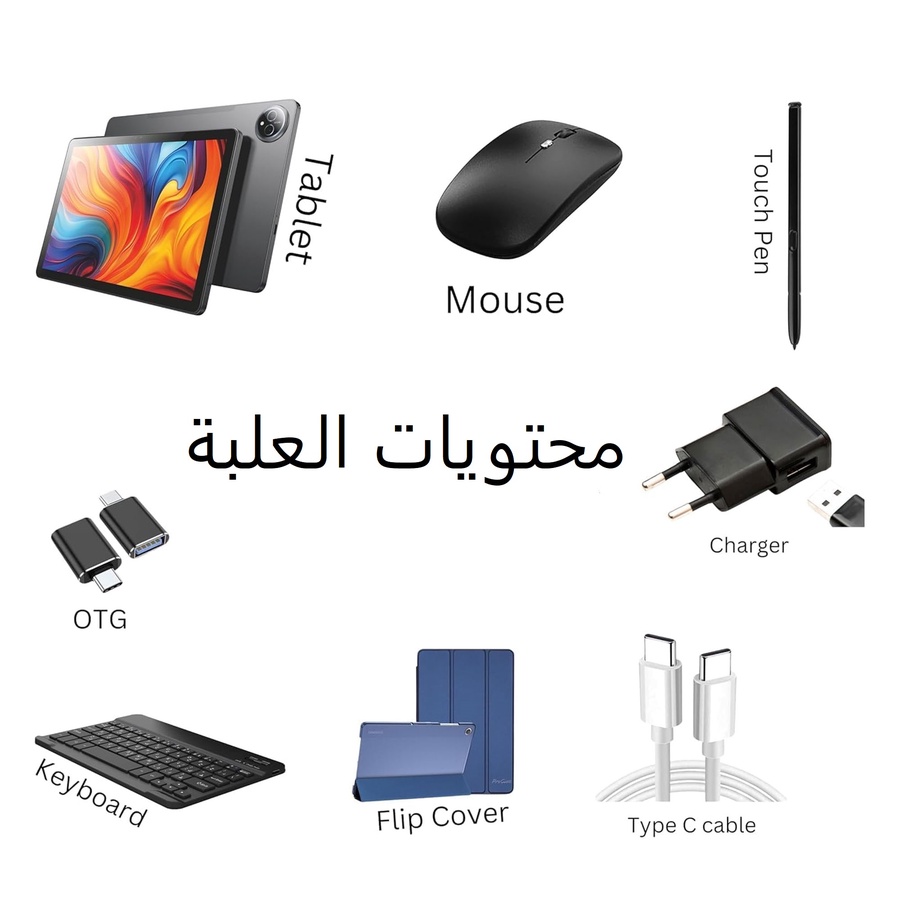 اللي يميّز تابلت Oteeto Tab 14 Pro أكثر، إنه يجي مع كيبورد، قلم لمس، وماوس جاهز للاستخدام، عشان تقدر تكتب، ترسم، وتشتغل براحتك سواء بالبيت أو المكتب 🖊️⌨️🖱️. تصميمه أنيق بالألوان الرمادي، الأسود، والفضي، وصُنع بمعايير جودة عالية في الصين.