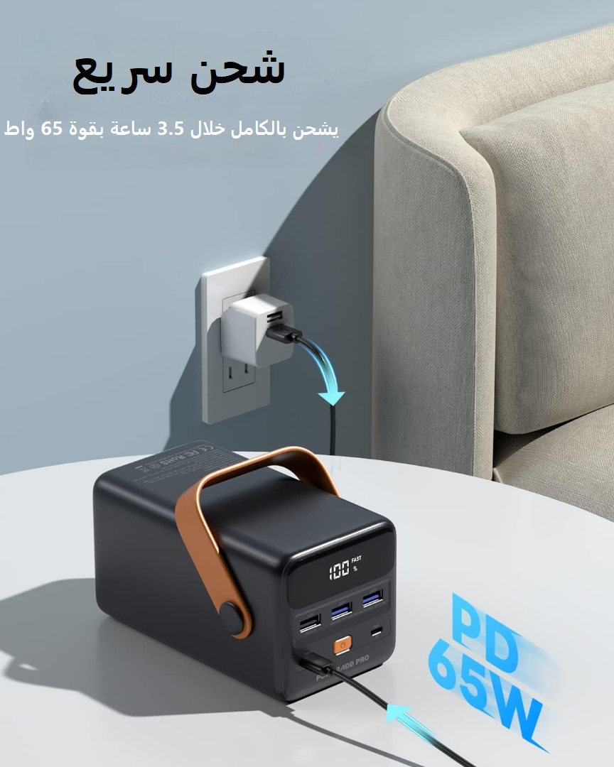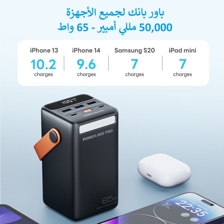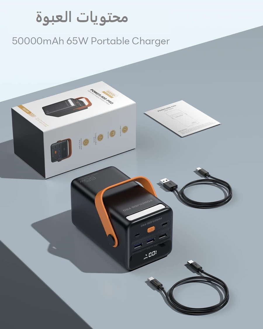 العملاق بسعة 50,000mAh 🔋 هو رفيقك المثالي في السفر والطلعات والرحلات الطويلة. يتميز بتقنية الشحن السريع PD